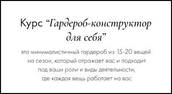 Это минималистичный гардероб из 15-20 вещей на сезон, отражает вас и подходит под ваши роли и виды деятельности
