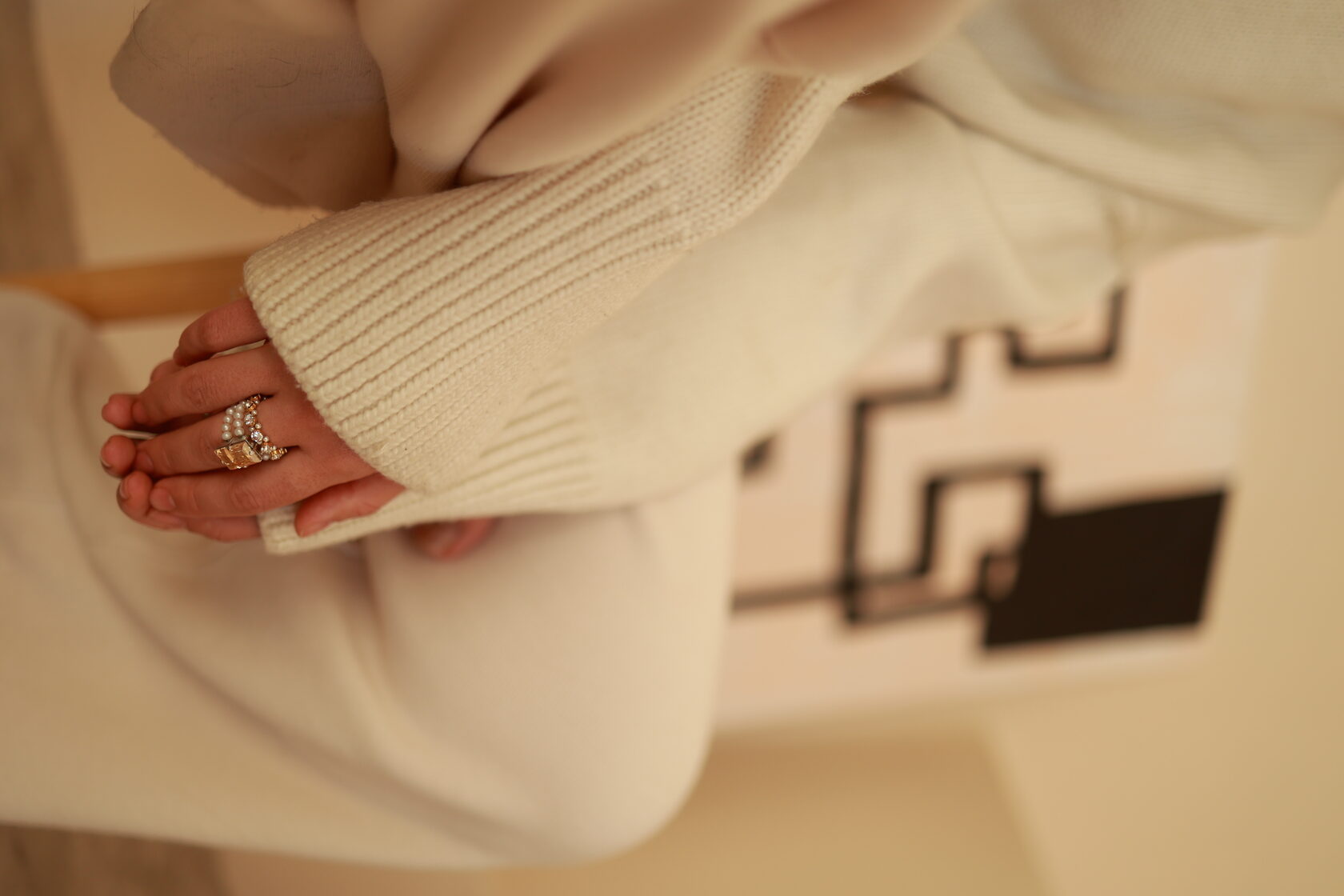 я искала кольцо с зеленым камнем. Мне оно было жутко нужно, и только потом я поняла, зачем. Это был период пандемии, было все шатко-валко, и я искала баланс. Зеленый цвет — это баланс. До мозга не доходит, что надо успокоиться и найти баланс, он занят чем-то другим. А тело знает и слышит наперед, подсказывает мозгу — вот что мне нужно, посмотри. Самое интересное, что тело всегда знает больше, чем мы.
